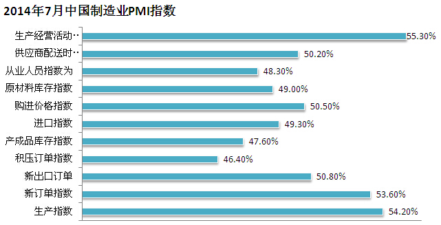中国物流与采购联合会、国家统计局服务业调查中心发布的2014年7月份中国制造业采购经理指数(PMI)为51.7%,比上月上升0.7个百分点。